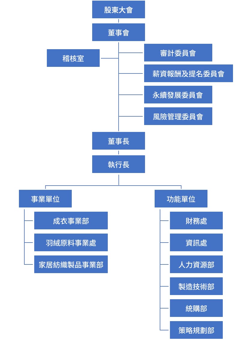 | 永續發展室 | 建立並推展公司社會責任政策、公司社會責任之共識、觀念、制度的教育訓練、配合政府單位公司治理政策要求。 | 詹賀博 執行長 |