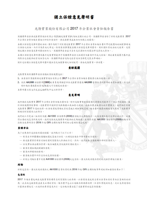 2017 Corporate Social Responsibility Report Independent Assurance Opinion Statement