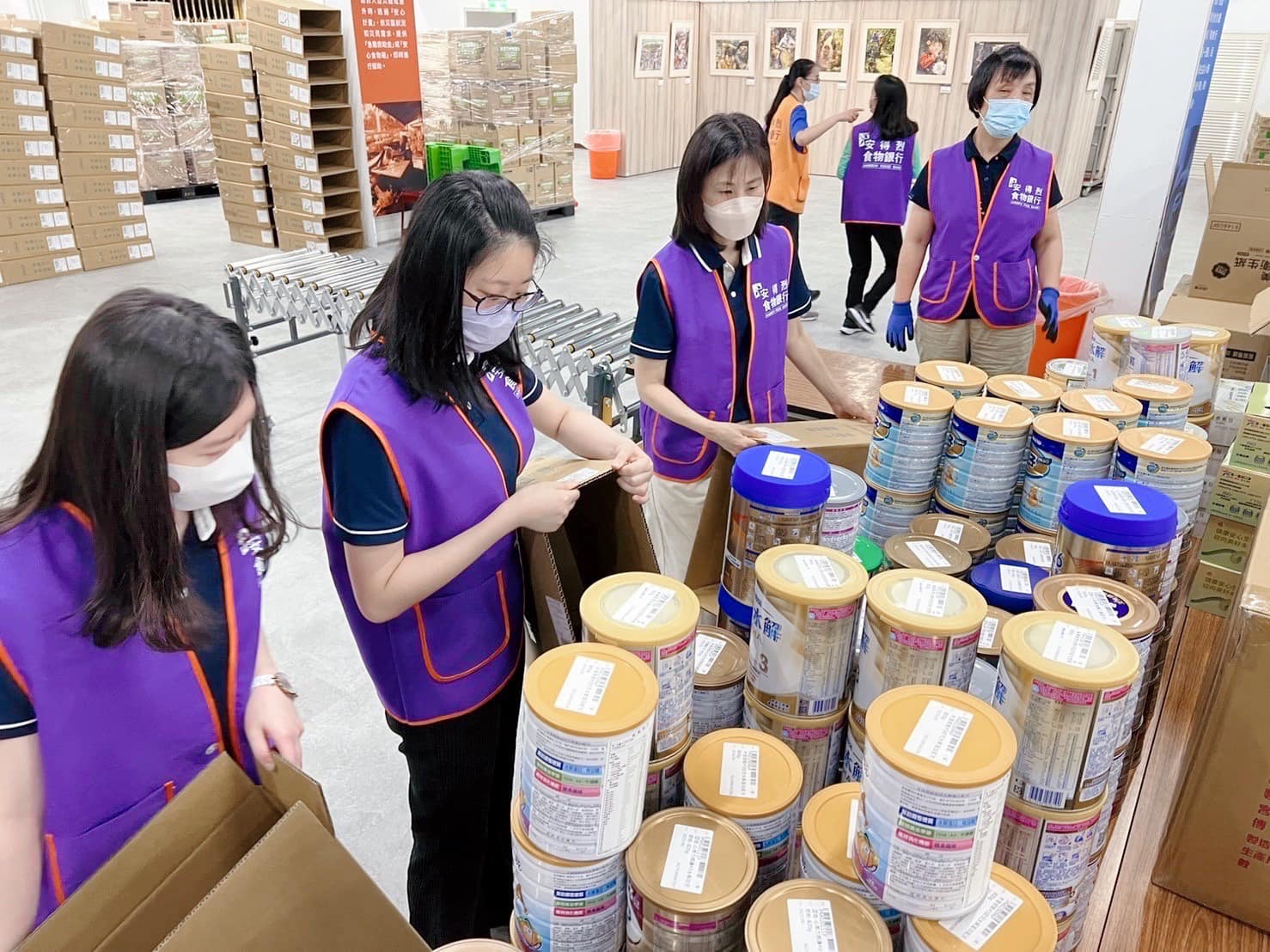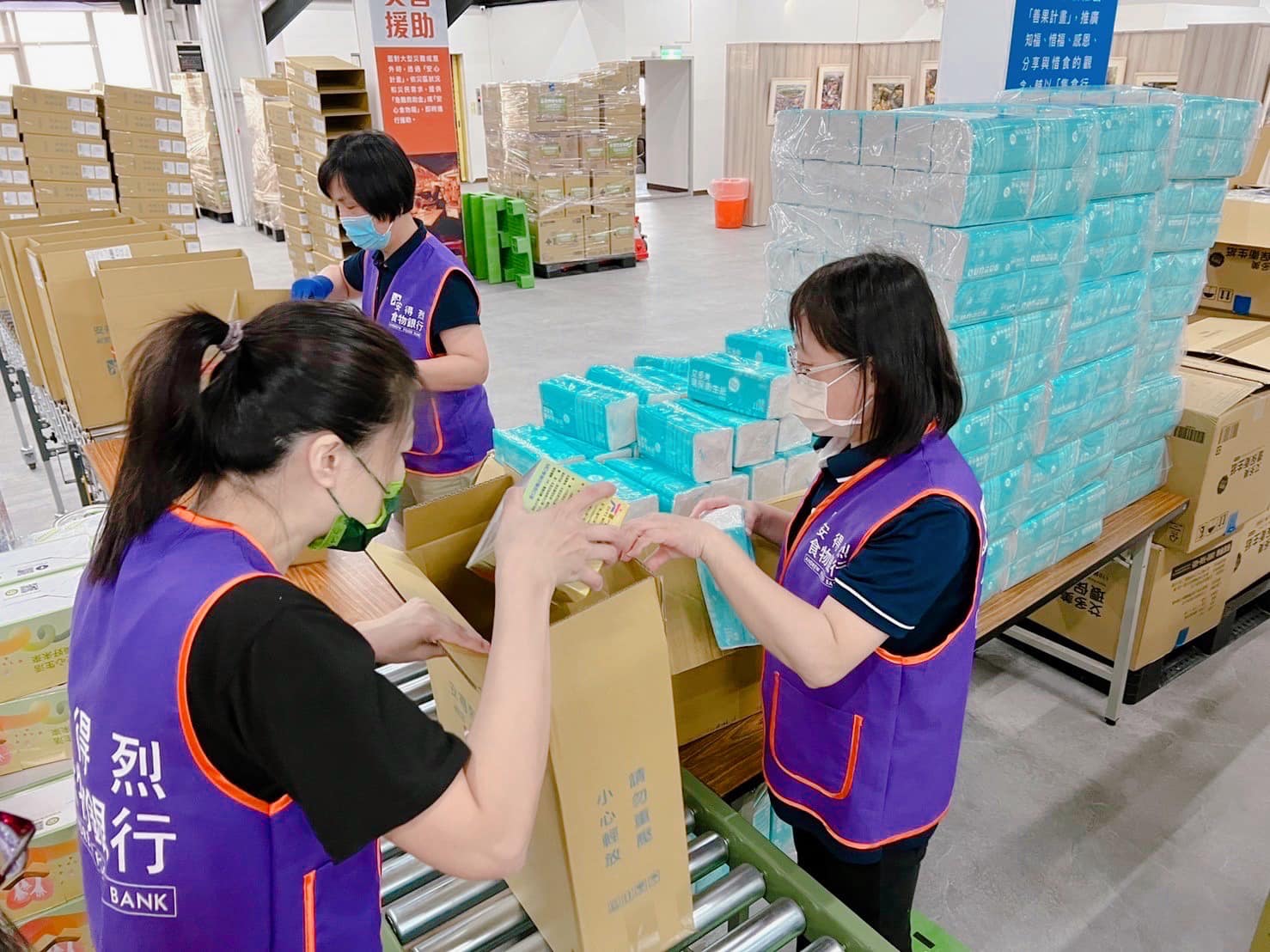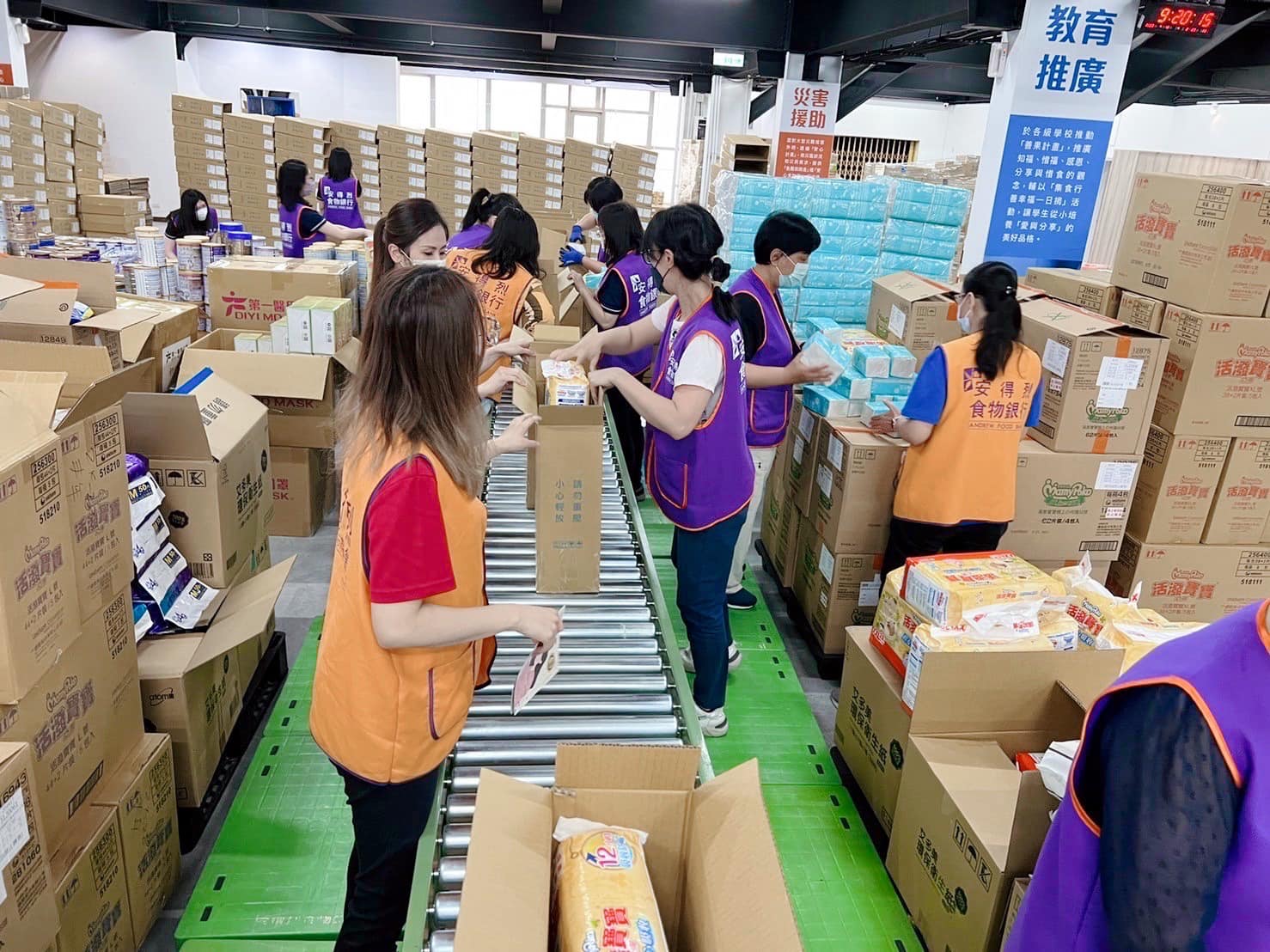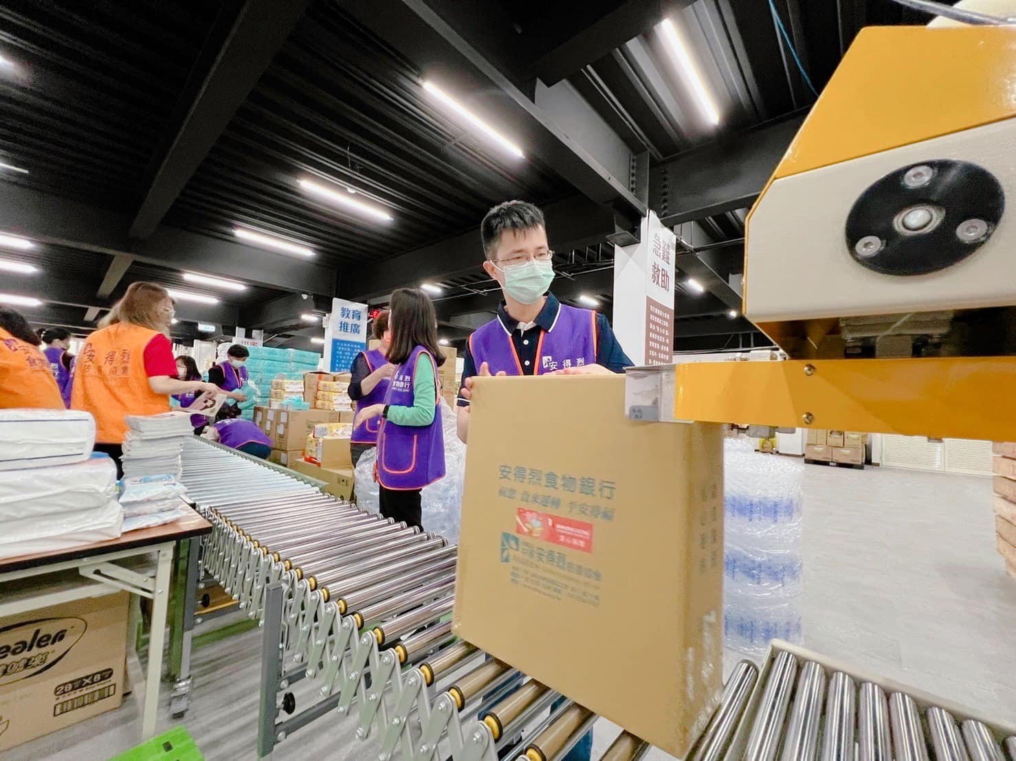 這次在安得烈慈善協會,首次使用到了輸送台來進行食物箱的包裝及輸送, 正所謂「工欲善其事,必先利其器。」, 10幾位志工只用了一個上午就完成了500份的愛心!