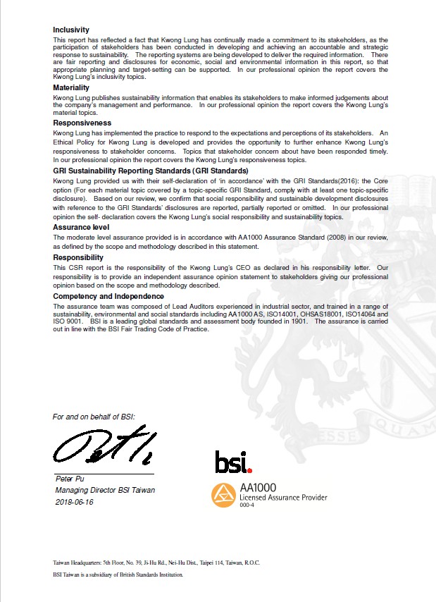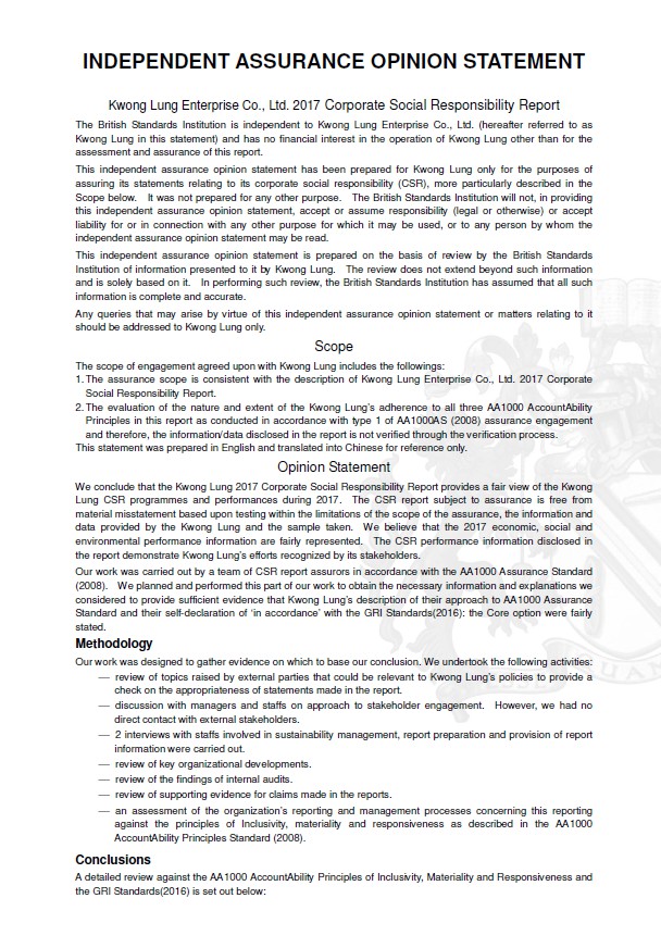 2017 Corporate Social Responsibility Report Independent Assurance Opinion Statement