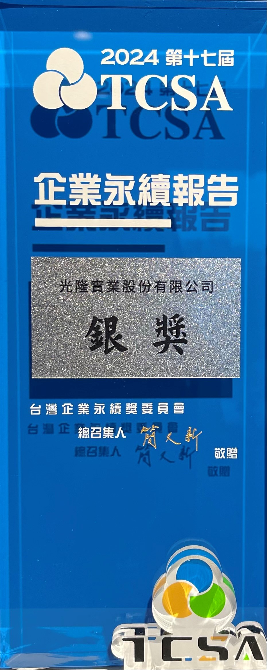 Kwong Lung Industrial Honored with Silver Award at the 17th TCSA Corporate Sustainability Report AwardsKwong Lung Industrial has been recognized with the Silver Award in the Traditional Manufacturing Category at the 17th Taiwan Corporate Sustainability Awards (TCSA), acknowledging the company’s continued efforts in advancing sustainability. By actively promoting social engagement and charitable initiatives, Kwong Lung has deepened its commitment to sustainable operations and strives to fulfill its role as a responsible corporate citizen. With customers, shareholders, employees, the environment, and society as its core focus, Kwong Lung is dedicated to pursuing sustainable growth for the long term.